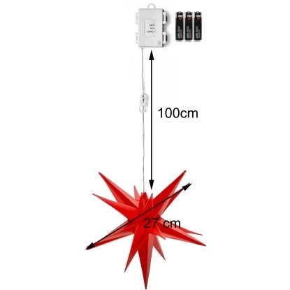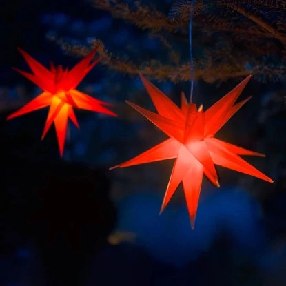 Die Amare LED-3D-Weihnachtssterne 2er-Set mit Timer Rot Ø 27 cm besitzen je 3 LEDs. Sie kommen inkl. 6 x 1,5 V Batterien LR6 AA. Die Sterne sorgen für ein stimmungsvolles Ambiente, ob im Wohnzimmer, Wintergarten, Terrasse oder an der Außenfassade. Sie lassen ihre Umgebung zauberhaft erstrahlen und sorgen für strahlende Augen bei Groß und Klein.