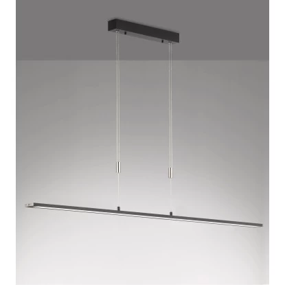 Durch die moderne Oberfläche in sandschwarz-nickelfarben matt findet dieses Modell automatisch einen besonderen Platz in jedem Wohn- Essbereich. Mit einer Länge von 160 cm und einer Breite von 6 cm leuchtet sie jeden Tisch optimal aus und lässt durch die Höhenverstellbarkeit von 90-150 cm auch in diesem Bereich keine Wünsche offen.