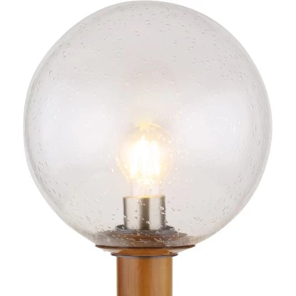 Diese zeitlose Außenleuchte (Ø25 cm) der Serie Ossy ist ideal mit einer Höhe von 50 cm als Stehleuchte im Außenbereich geeignet und macht durch ihre schöne Holzoptik ein tolles Gesamtbild. Aus einem zylinderförmigen Körper in schöner Holzoptik ragt eine E27 LED Fassung welche mit einem Leuchtmittel Ihrer Wahl, bis zu einer maximalen Leistung von 15 Watt, bestückt werden kann. Ein kugelförmiger Glasschirm mit Blasen überdeckt die E27 LED Fassung und sorgt für einen Schutz gegen Wasserspritzer.