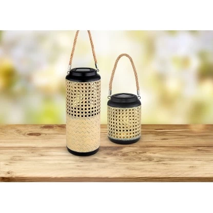 Globo LED-Solaraußenleuchte Laterne In Bambusoptik Zum Hängen Oder Stellen