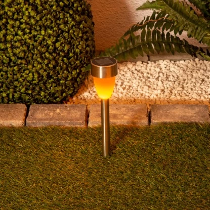 Das 6er-Set Solar-Erdspieß von Näve ist das perfekte Highlight in jedem Garten. Die Erdspieß von Näve wirken schlicht und elegant. Bei Nacht leuchten die Spieße in schönen kleinen warmweißen Lichtern mit Flammeneffekt und wirken dabei wie kleine Kerzen im Garten. Dank des Solarbetriebs verbraucht die Leuchte keinen Strom und man muss sich keine Gedanken über das Aufladen eines Akkus oder das Wechseln der Batterien machen.