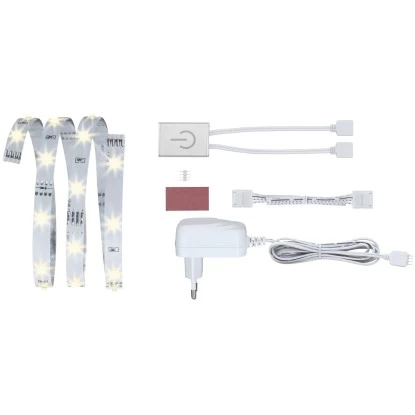 Das Paulmann YourLED ECO Stripe Komfort-Set bietet ein steckerfertiges Set, das alles enthält, was Sie für die Installation benötigen. Das Set beinhaltet ein Power Supply (Netzteil) und einen unbeschichteten LED-Streifen in warmweißer Lichtfarbe mit einer Länge von 1 m. Der LED-Streifen erzeugt ein wohnliches Raum- und Nutzlicht. Das Set enthält auch den YourLED Touchschalter, mit dem der LED-Streifen durch einfaches Antippen ein- und ausgeschaltet werden kann.